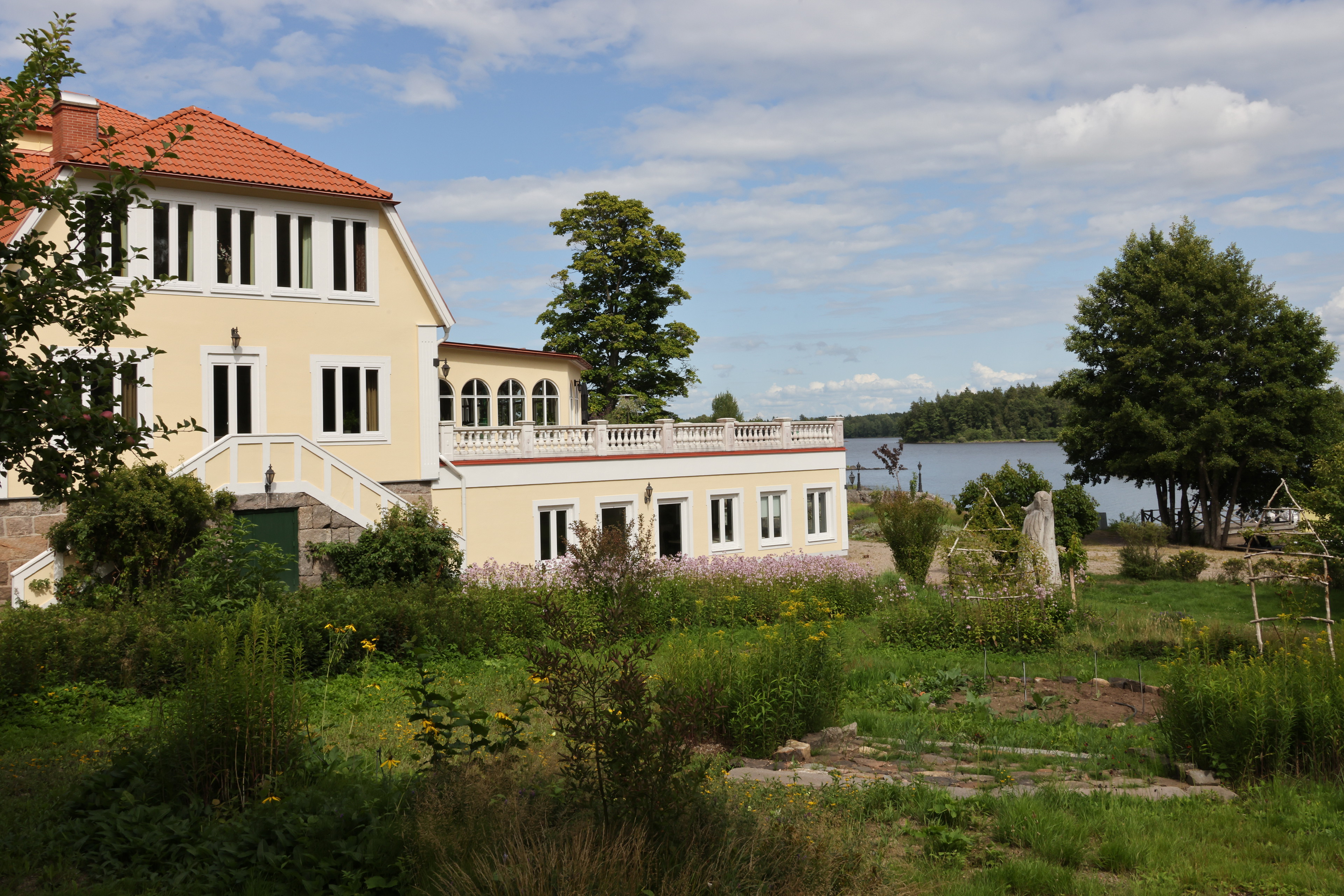 Mökkelsnäs also offers accommodation, a café, parking, and art exhibitions in a beautiful manor house setting.