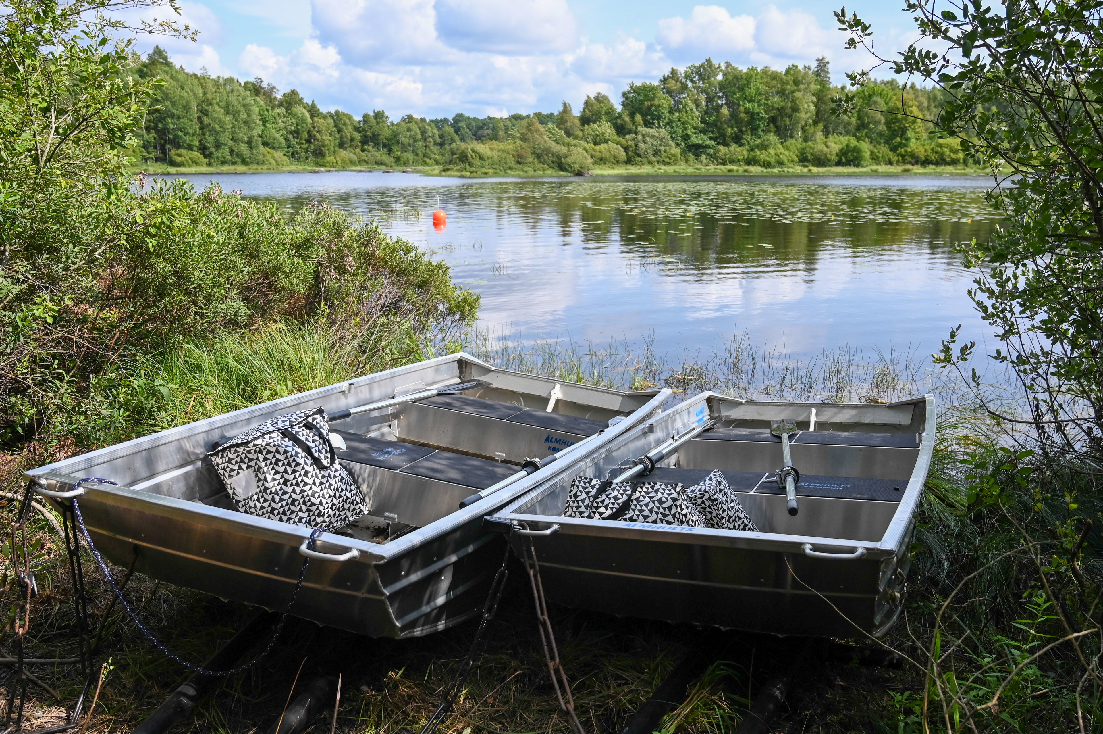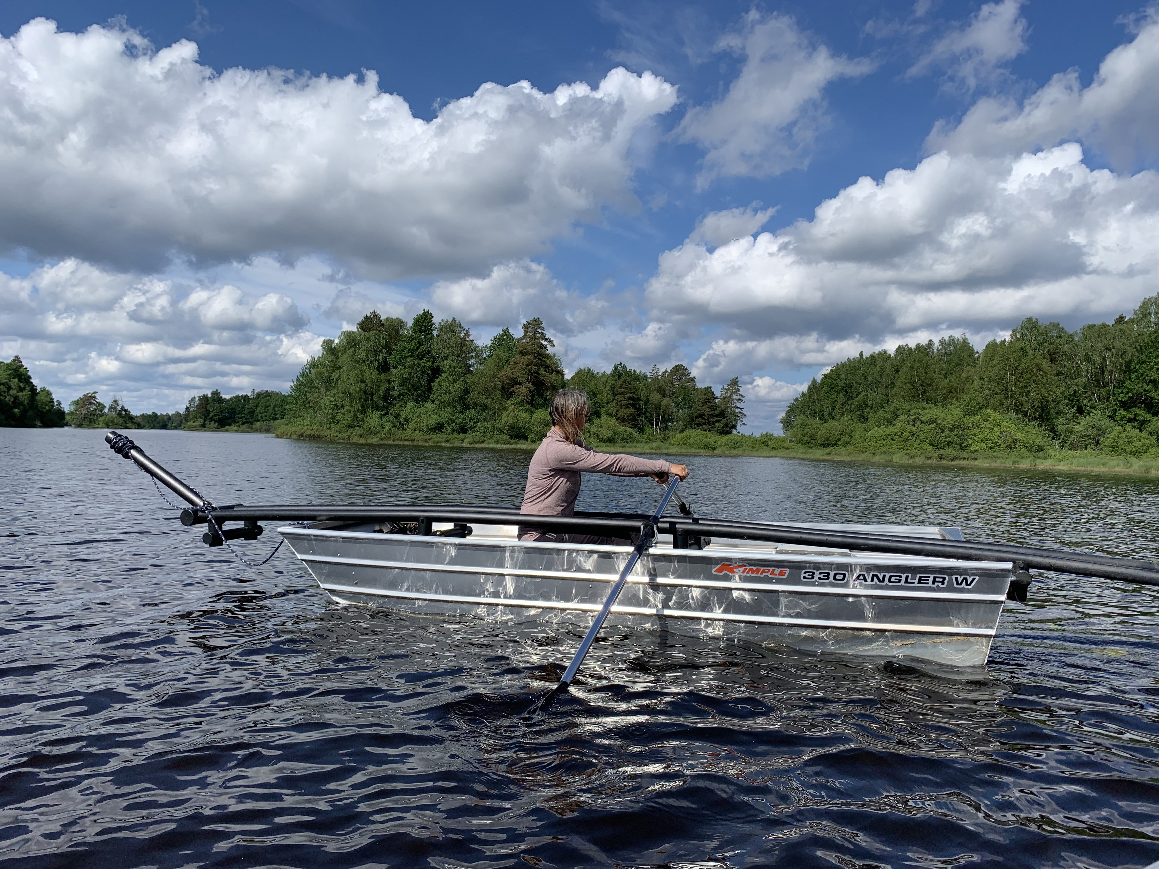 To get across the strait between Lång and Möckelsnäs, you have to row. There is a three-boat system consisting of three rowing boats.