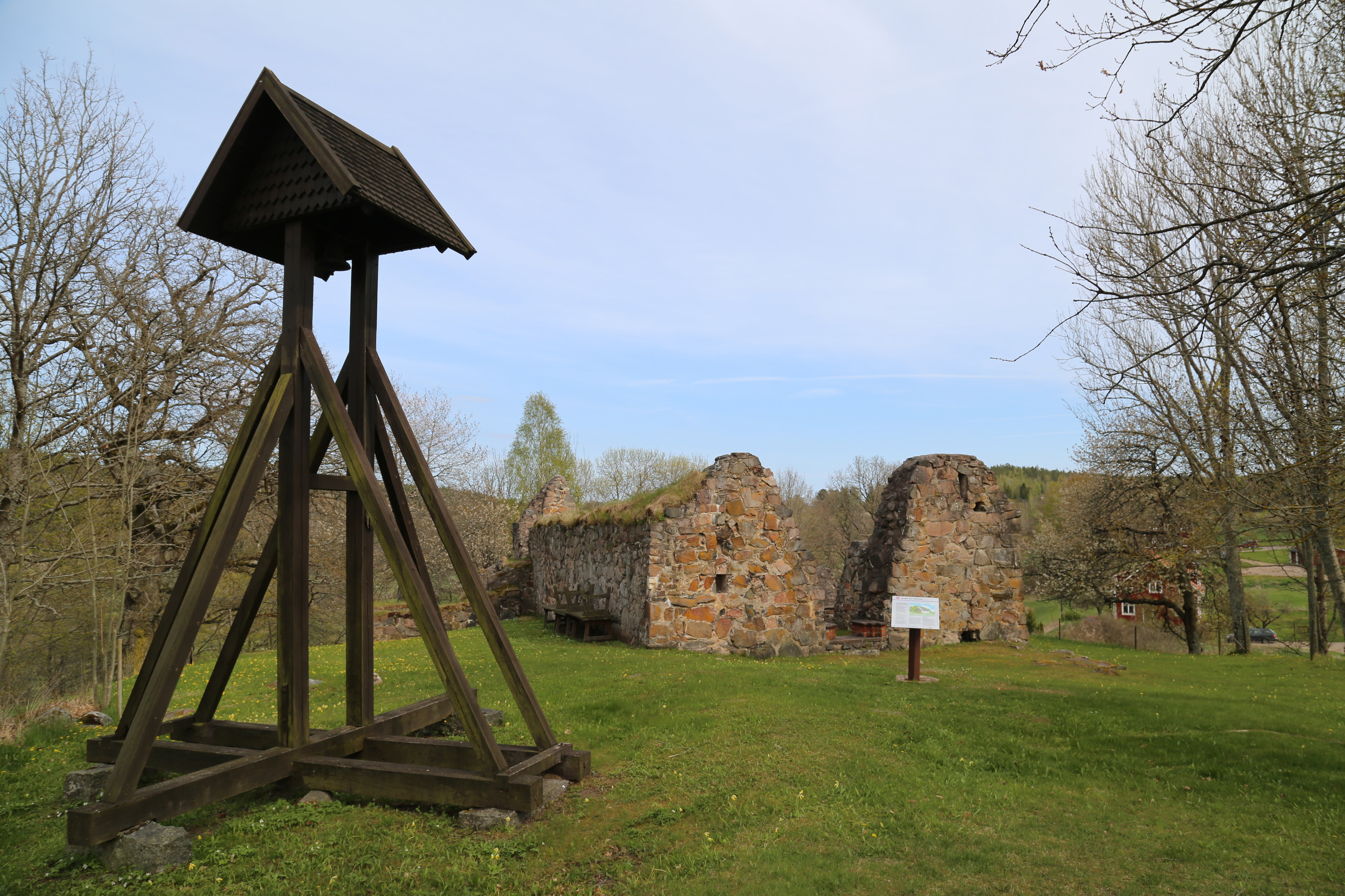 Leden följer därefter den gamla vägen och upp på höjden till Ukna gamla medeltida kyrkoruin. Platsen är mycket vacker med en strålande utsikt över Uknadalen. Här låg tidigare en korsprydd kristen runsten med en lång inskrift, som en förbön över en Torgils. Den kan nu ses i Ukna nya kyrka.