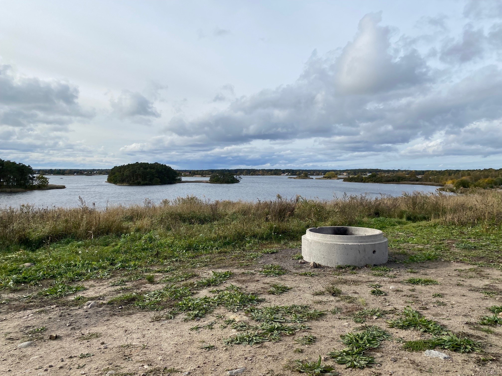 Ett mindre vindskydd vid utsiktsplats i Skärgårdsparken längs Kalmarsundsleden, Promenadslinga Kulla…