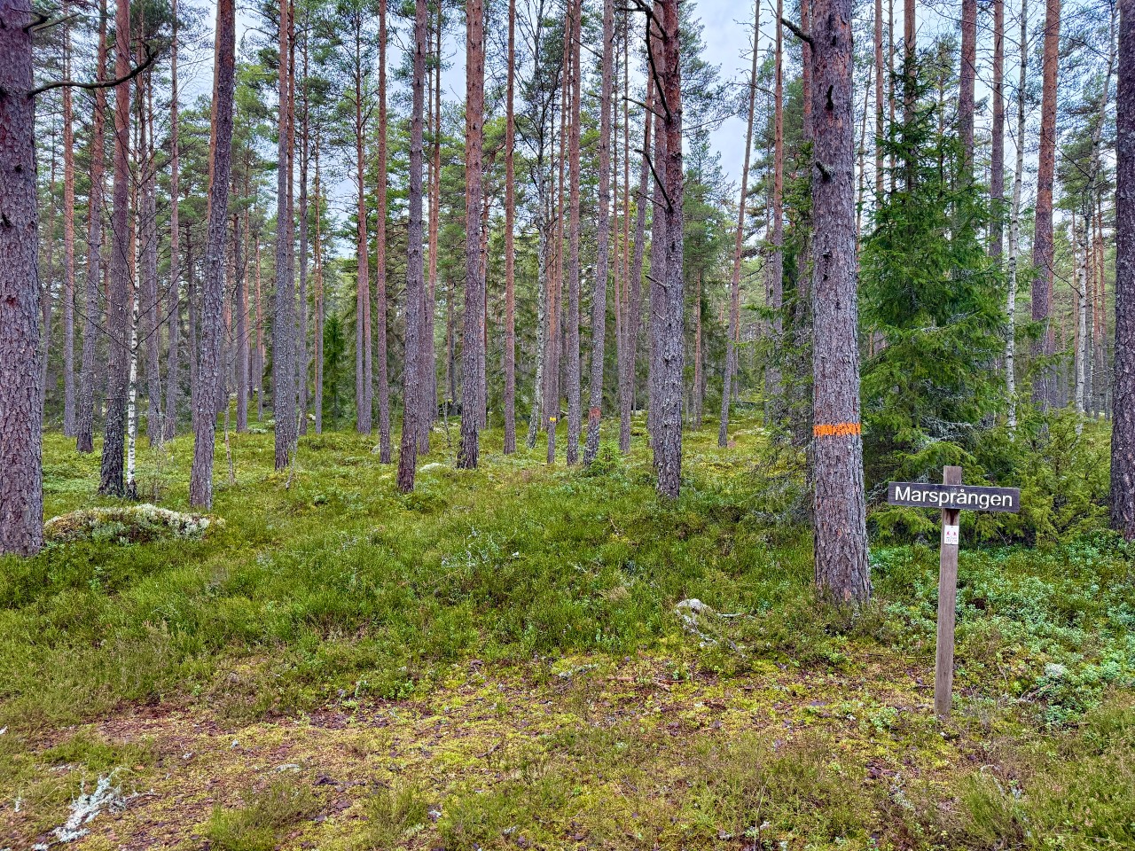 Leden är lätt att följa och lämpar sig väl för en kortare tur eller en halvdag i lugnt tempo. Rundslingan är markerad med blå färg och du når den från Smålandsleden via den gula slingan vid skylten "Marsprånget".